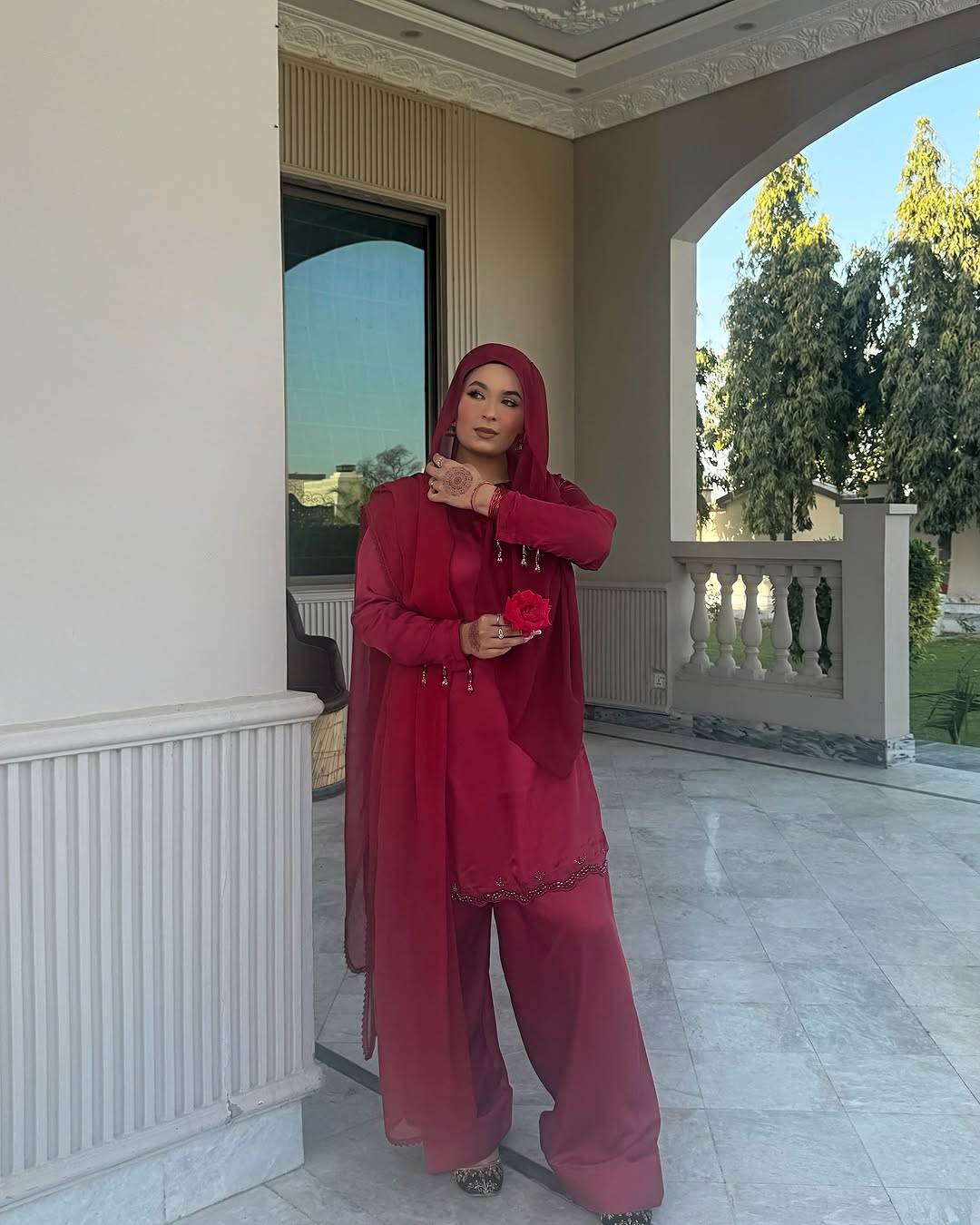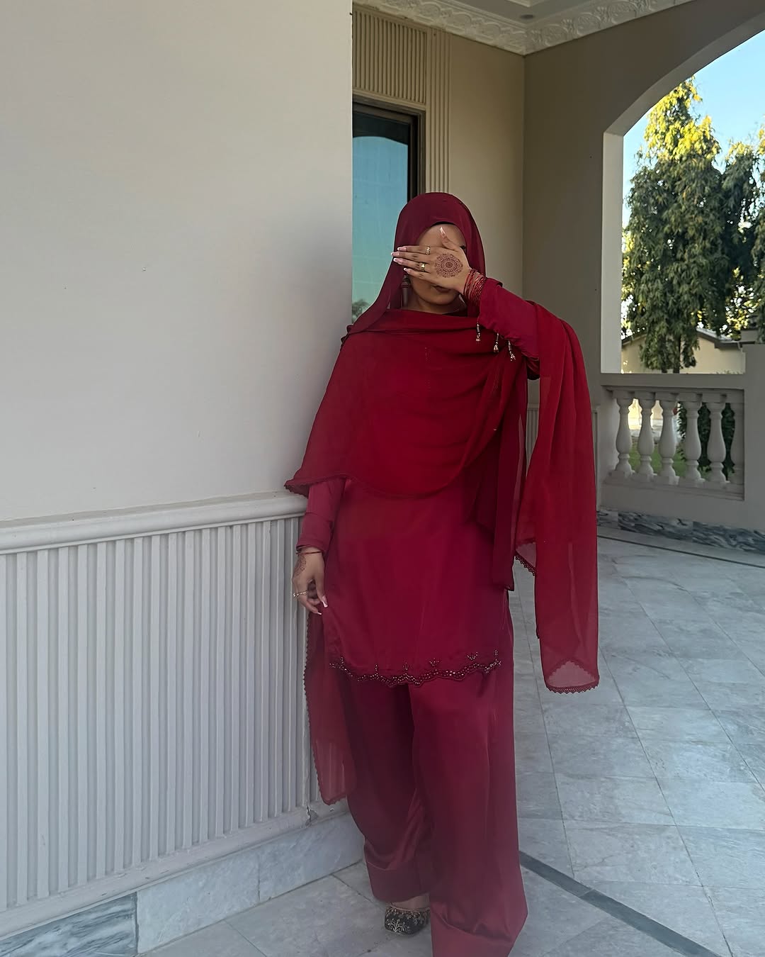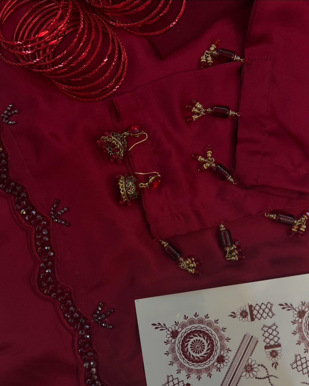 Front daman and neckline embellished with stone work,round neckline,full salvees,long length