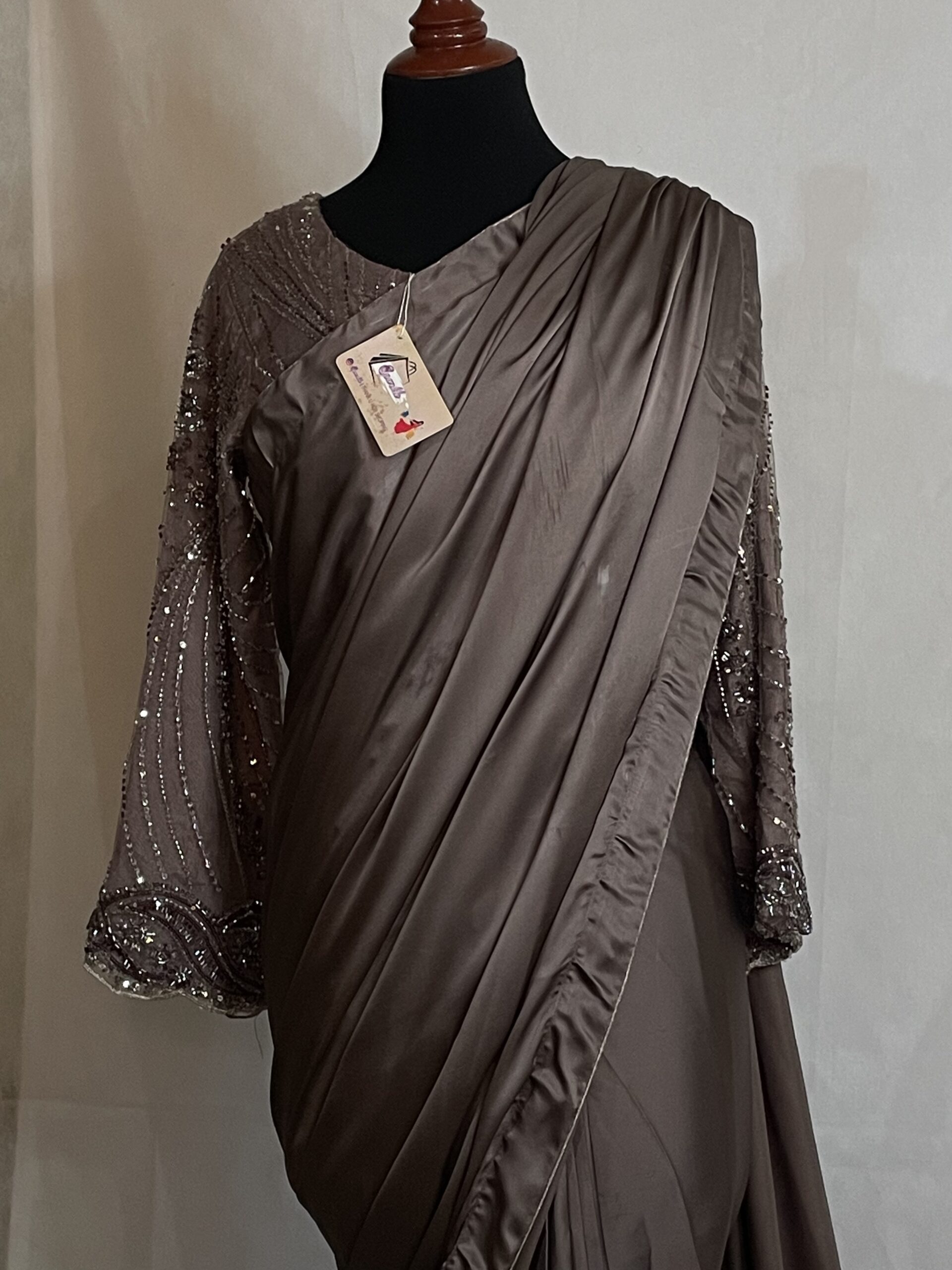 [New saree collection,weeding best outfit,sparrkles,light brown color,]