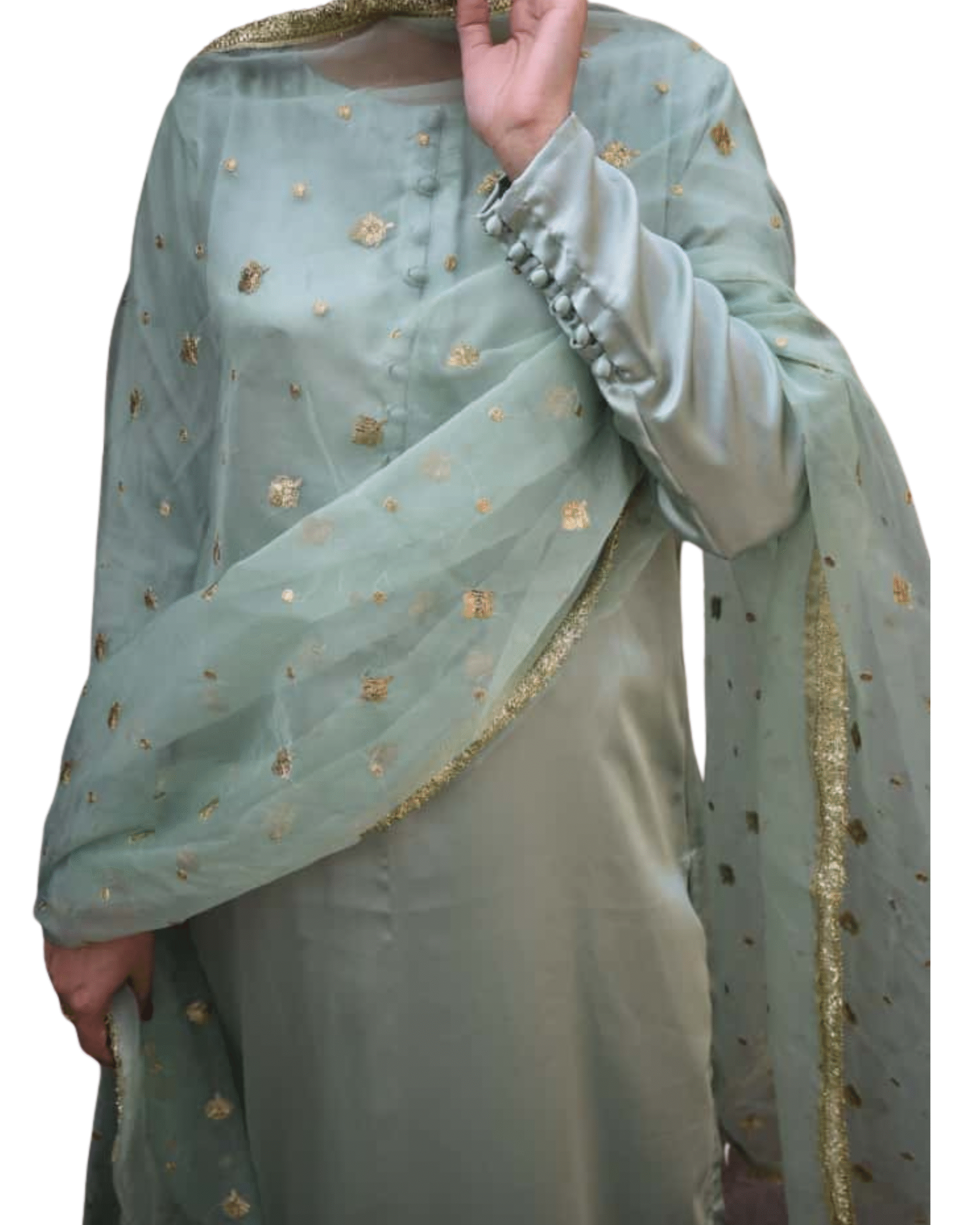 Dress Details: neckline front buttons and sleeve buttons are also there.
